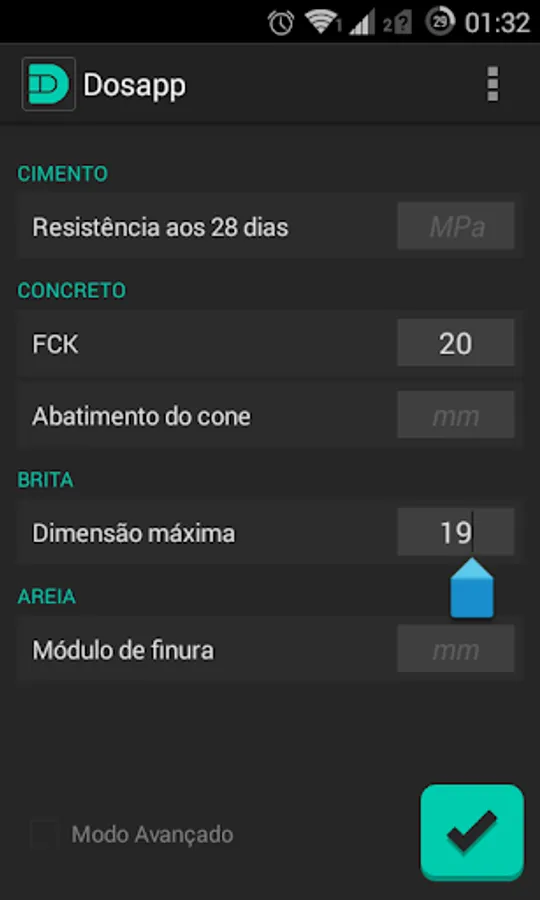 Dosapp is an application for concrete dosage based on the method of the Brazilian Portland Cement Association.