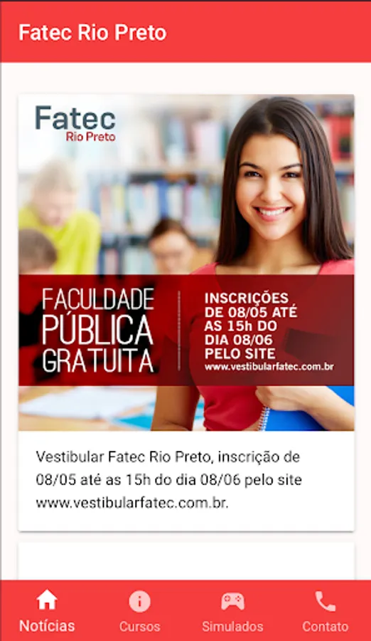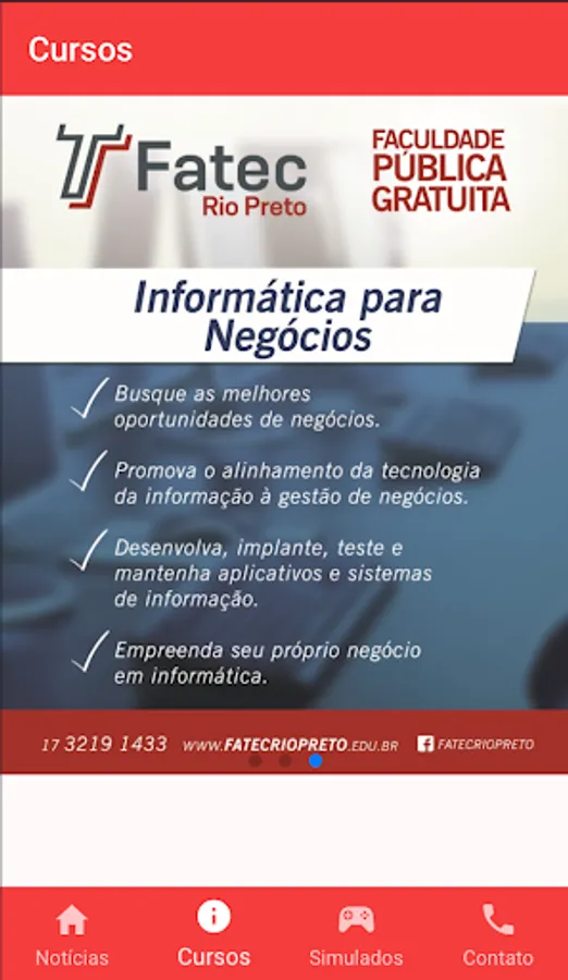 From the application you will receive notifications about all events, calendars and actions taken by FATEC. In addition, you will have quick information on our courses and contacts.