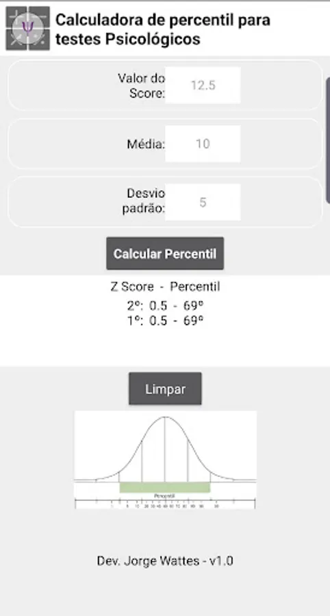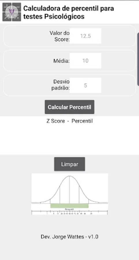 This application seeks to facilitate the work of a psychologist who, when performing a psychological test, finds a score value and wants to know exactly what percentile of the sampling group the score is in, not just the quartiles indications normally presented in the manuals.
