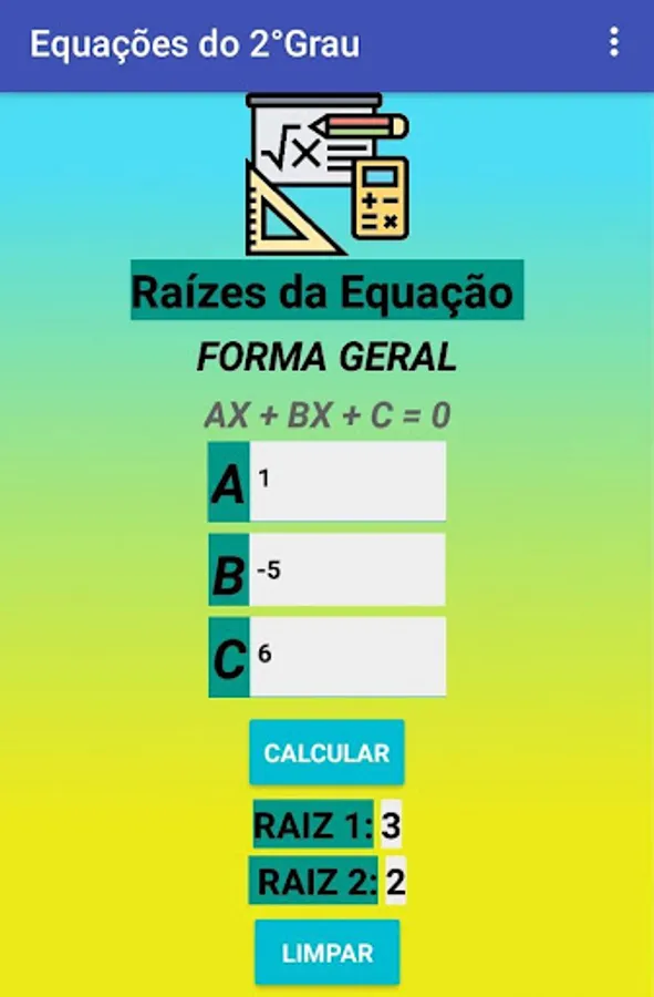 This app is a calculator for solving 2nd degree equations simply and with the step by step results found.