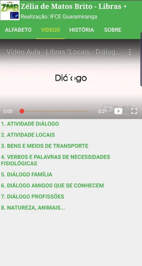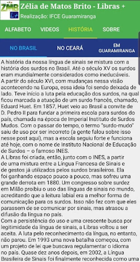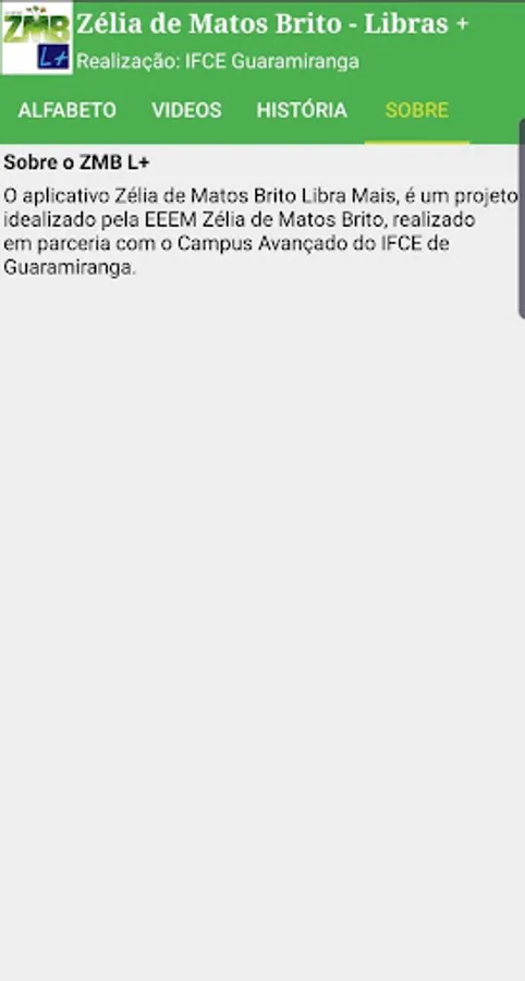 This application aims to spread knowledge about the Brazilian Sign Language (Libras), aiming at the inclusion of people with disabilities in school environments and other social environments.
