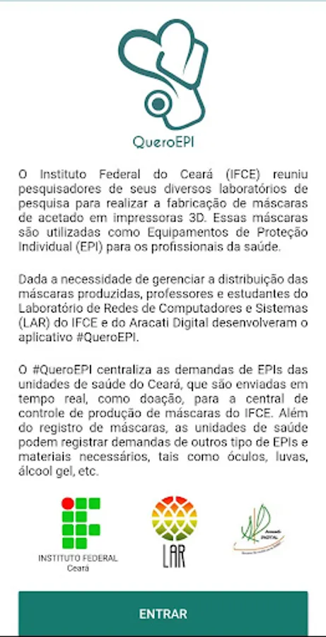 Through QueroEPI, health units will be able to register their demand for Personal Protective Equipment (PPE). This record will be passed on to the authorities / bodies responsible for distribution.