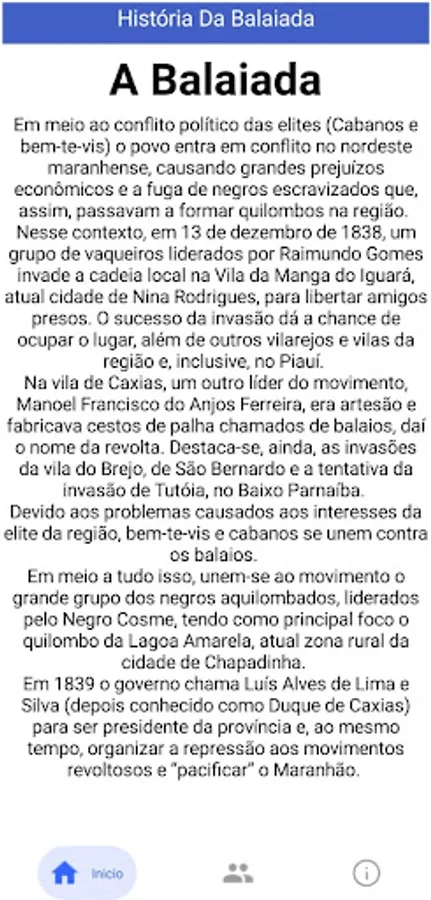 The Rota dos Balaios application presents information related to the history of the balaiada, tourist routes of the cities that make up the balaiada, and other information related to this historical event.