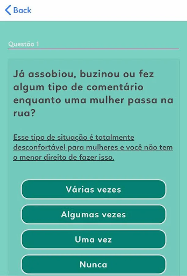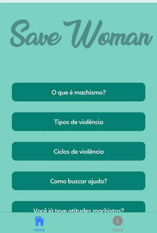 Save Woman is an informative app about violence against women in all walks of society. The aim is to educate women about their rights and encourage the denunciation of perpetrators, as well as informing men, who are often the roots of the problem at hand. The basis of the application was a qualitative research and the methodology used was the search for bibliographic information from the final project report of the site "Women of Athens", file analysis, interviews with professionals from the areas of Social Assistance, Psychology, and the increment brainstorming through a lecture given to the students of the IFRN project, “Thousand Women”. The content of the application addresses the definition and description of the types of violence listed in the Maria da Penha Law, the protection of legislation against cases of violence, historical contexts and questionnaires about abusive and violent relationships.