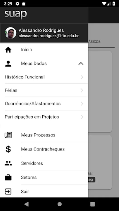 Mobile version of the Unified Public Administration System - SUAP used in IFTO containing the following functionalities: