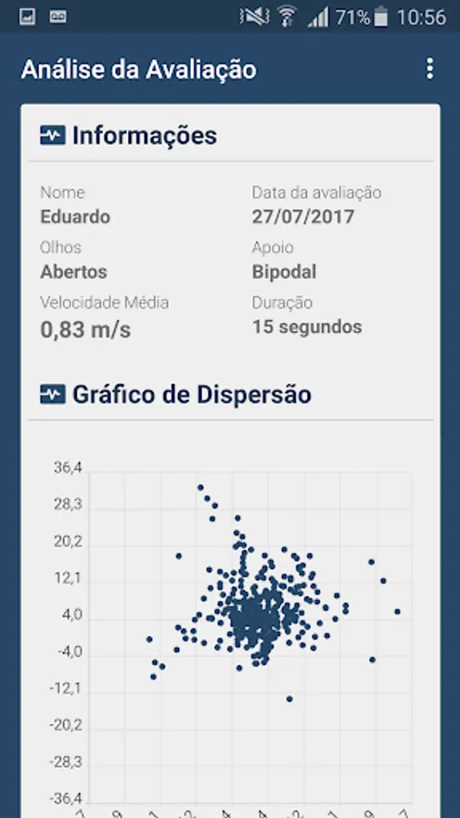Developed by Biomedical Informatics course students UFCSPA as part of the discipline of Software Engineering II, and intended for physical therapists, the Balance application uses of your smartphone's motion sensors to perform a balanced assessment, and present the data in a simple way it's understandable.