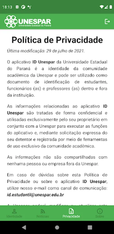 UNESPAR Student Identity is now Digital. In order to replace the old physical card, which is still active until its expiration date, the Unespar ID can be used by all members of the academic community at UNESPAR, such as Students, Faculty and University Agents.