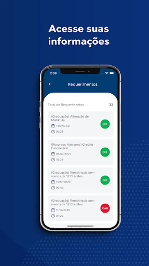 Now it's even easier to follow your academic trajectory at Unidavi. With App Unidavi you can consult notes, frequencies, installments and billet generation. Stay tuned that we will be adding new features soon.