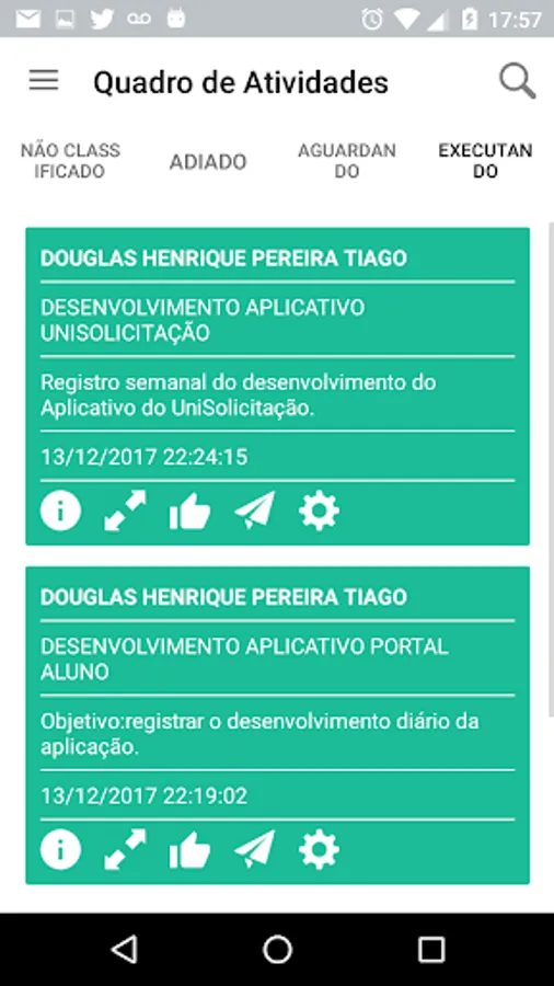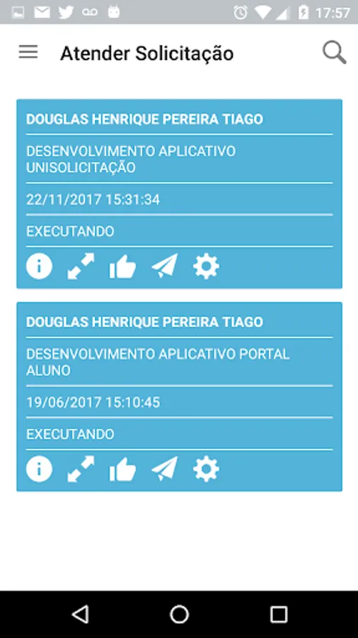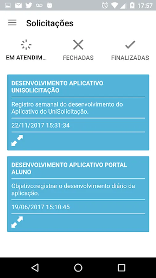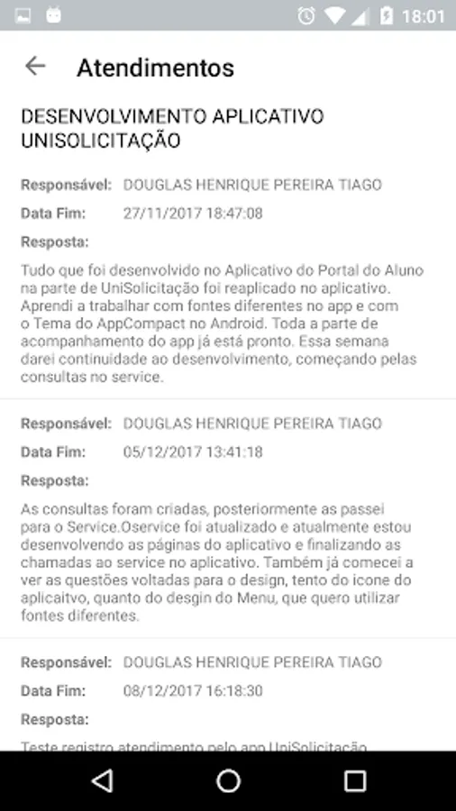 The application allows students and employees of the University Center of Patos de Minas (UNIPAM) to record and track requests made by them to the institution sectors, as well as enables employees to receive and meet requests for assistance by the responsible sector.