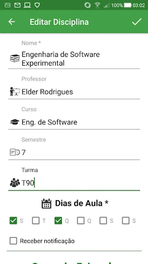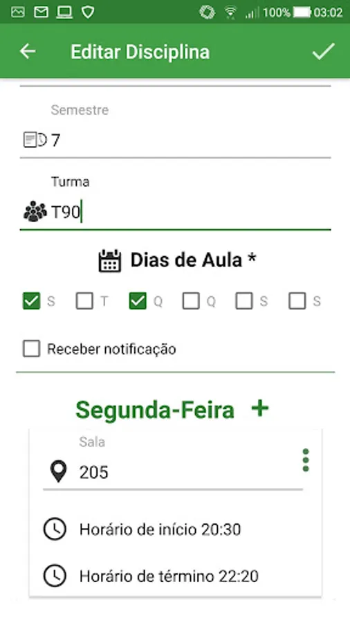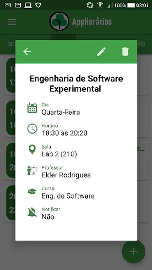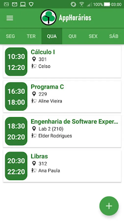 The AppHorarios aims to help students and teachers organize their class schedule, remembering the schedule, room and other information of each enrolled curricular component. In addition, the user has the option to choose to be notified before the beginning of each curricular component.