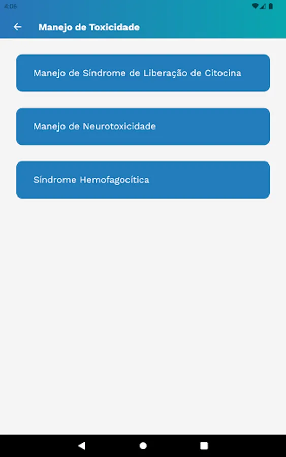 Innovative therapy with the use of CAR-T cells for the treatment of cancer has shown surprising results, being considered one of the greatest advances against some types of hematologic malignancies. However, despite impressive results, treatment with CAR-T cells can result in important adverse effects, such as cytokine release syndrome and possible central nervous system toxicity. This application aims to assist the physician in grading complications related to CAR-T cells and in the proper management, quickly and easily. In addition, it will be possible to identify the cell therapy products available in Brazil.