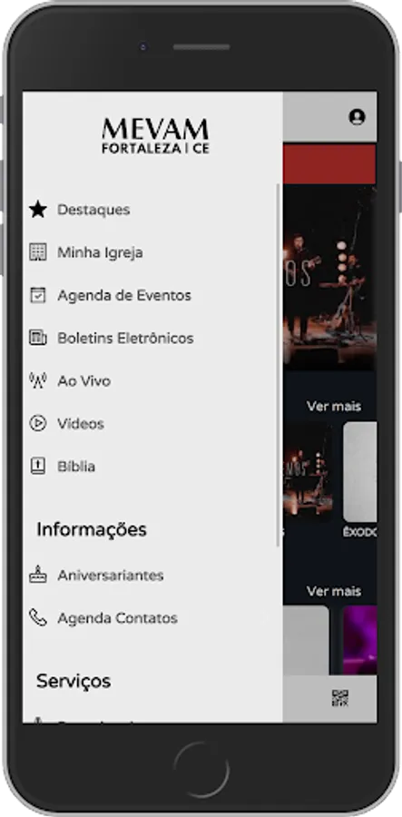 🎶 Contents (Audio/Video): Allows you to view and listen to Church content available on the App;