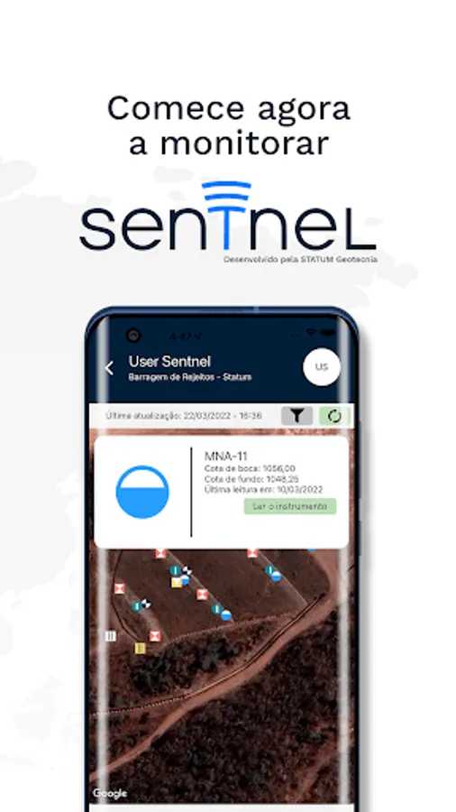 Sentnel is a monitoring system for geotechnical structures (dams, piles, trenches, sediment containment dykes, among others) developed by Statum Geotecnia.