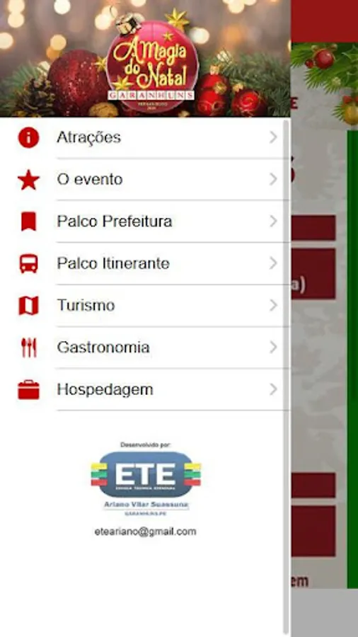 Application developed by ETE Ariano Vilar Suassuna in partnership with the city hall of Garanhuns-PE. With the application the user can have access to the entire program of the event, the attractions on the stage of the city hall and itinerant (Districts and neighborhoods), sights, try the gastronomy of the city, among others.