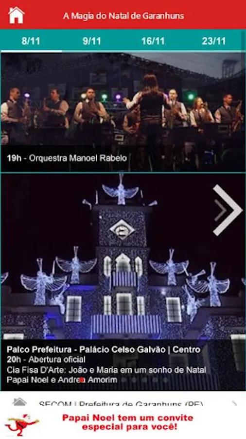 Garanhuns Christmas Magic takes place from November 8 to January 6, 2020 with 160 attractions and activities in the Garanhuns Center and neighborhoods. Access the app and get access to the event map, check the schedule, set up your schedule. Come with us!