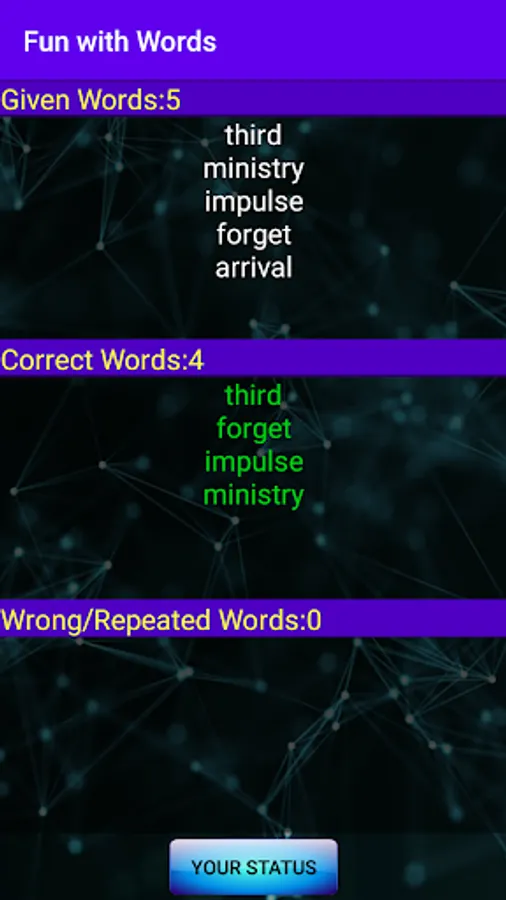 A set of words will be displayed on the screen for a particular time limit and the player has to remember these words and retype it.