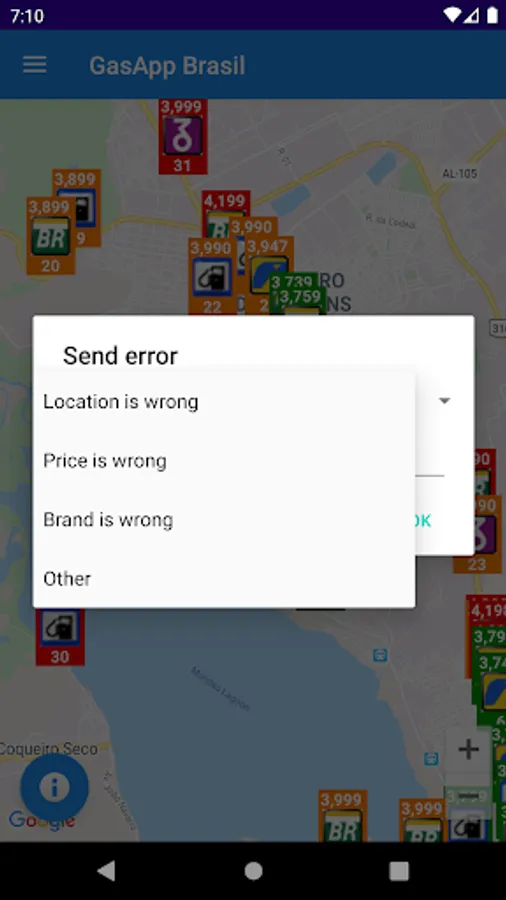 If you think a petrol station location is not correctly set , drag and drop and send the comments to us, after we check, it will appear in the new corrected place.