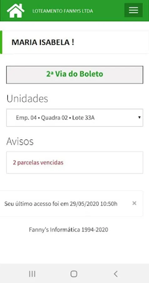 Developed by Fannys Informática, the application makes available, according to the user's profile, data from LOTEWIN – Subdivision Management Software.