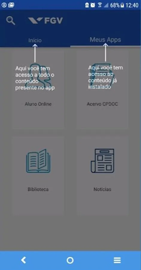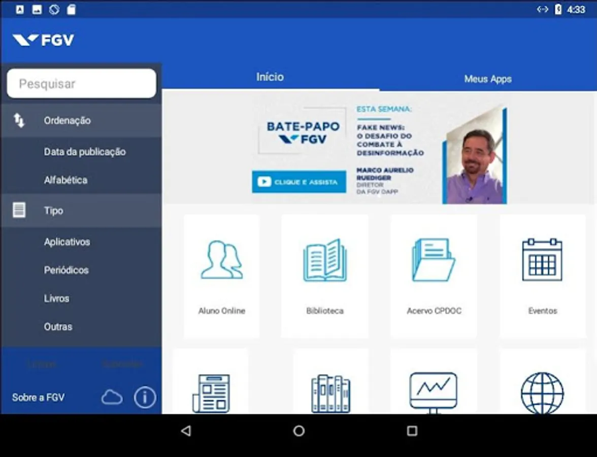 The FGV application gathers the main information about the schools and units of the Getulio Vargas Foundation.