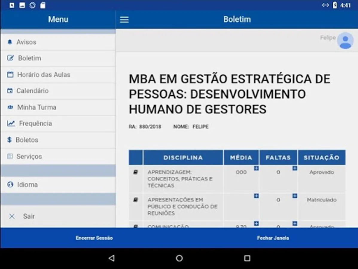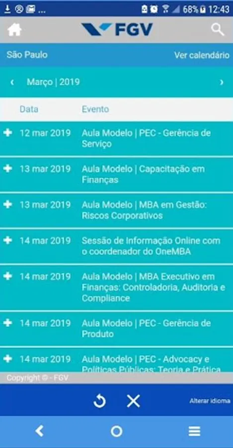 In addition, in "Online Student", you can keep track of your academic history and the student calendar of your course. Connect to the FGV quickly and practically.