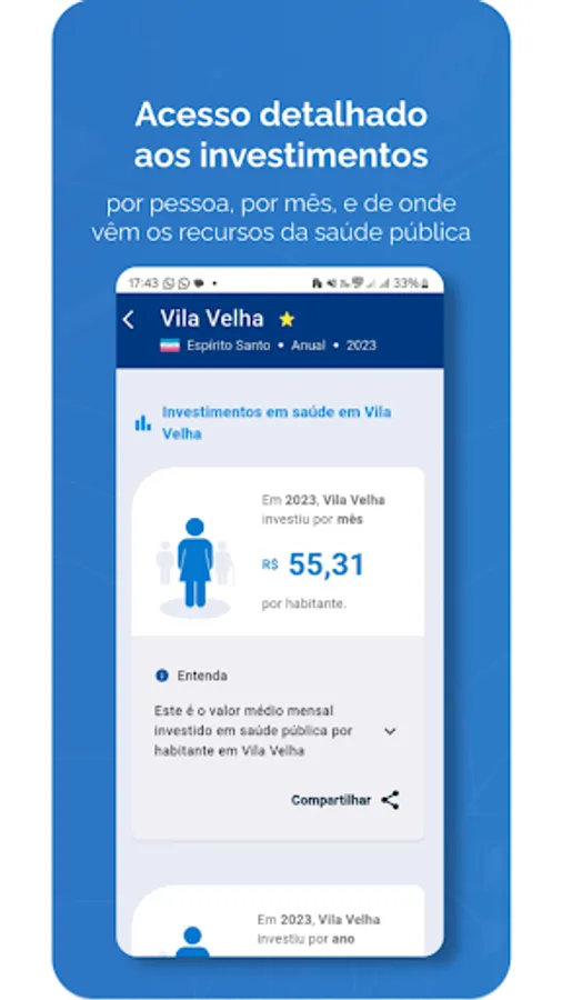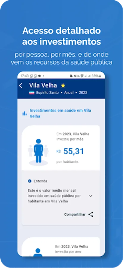 Access to SUS financial data: See how much is invested per month and per person in public health, and where the money comes from.