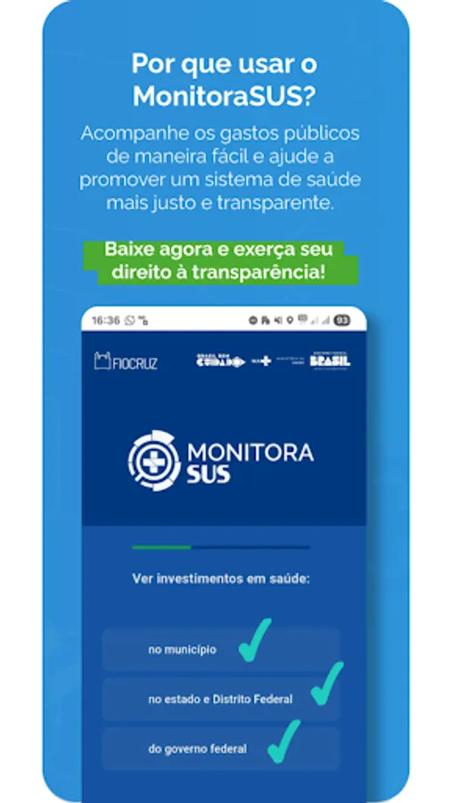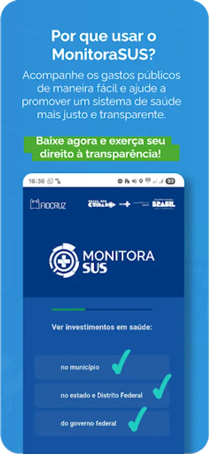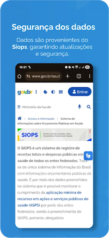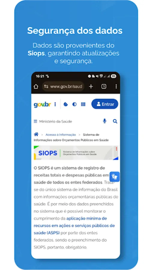 Secure and updated data: Information from Siops (Public Health Budget Information System) directly on your cell phone.