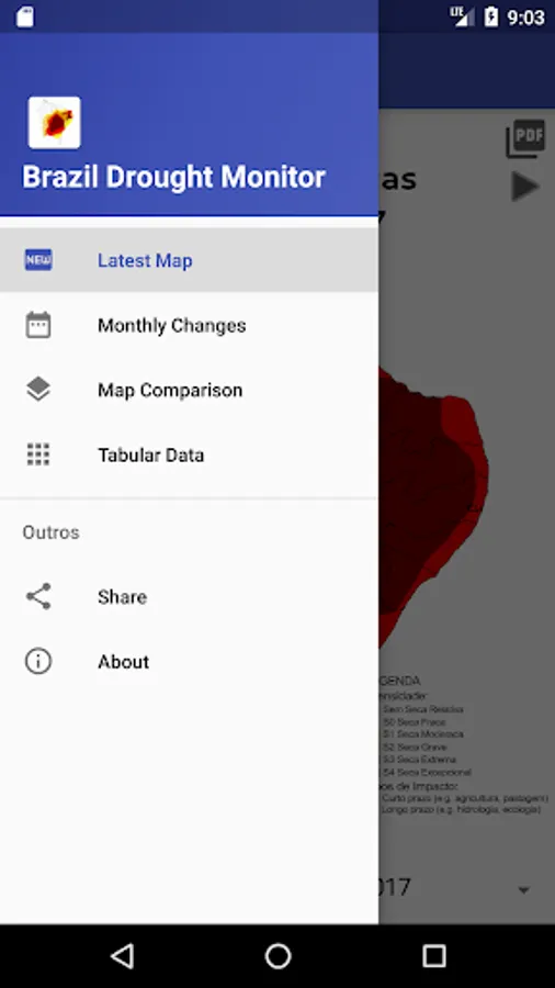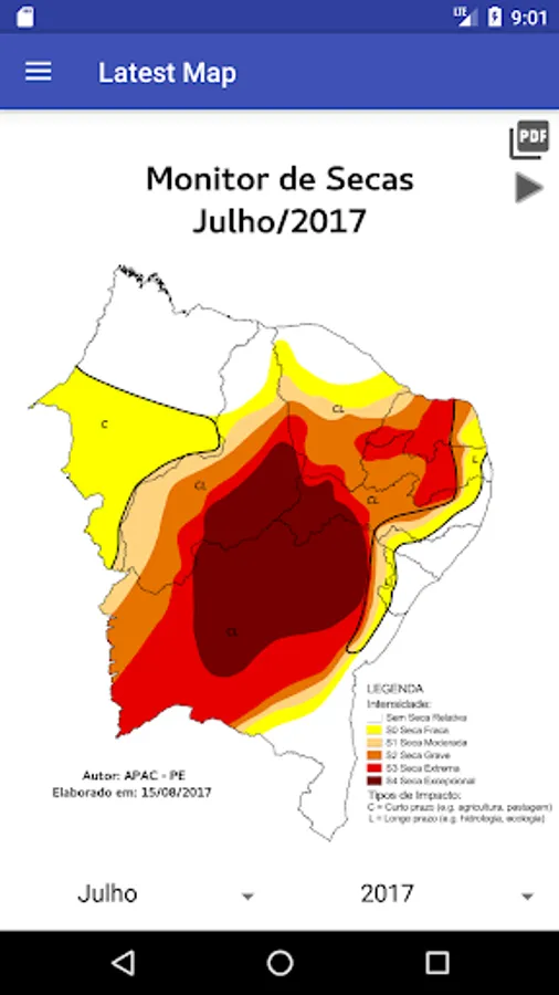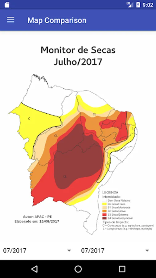 The Drought Monitor is a regular and periodic monitoring of the drought situation in the brazilian northeast, whose results are disseminated through the Drought Monitor Map. Monthly, information about drought situation are available up to the previous month, with indicators reflecting the short time (last 3, 4 and 6 months) and the long time (last 12, 18 and 24 months), indicating the evolution of drought in the region.