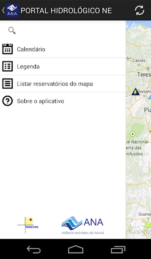 The Hydrological Northeast Portal application was developed in the framework of technical cooperation between ANA (National Water Agency) and FUNCEME (Ceará Foundation of Meteorology).