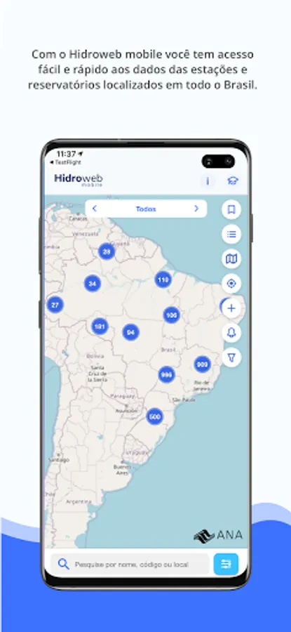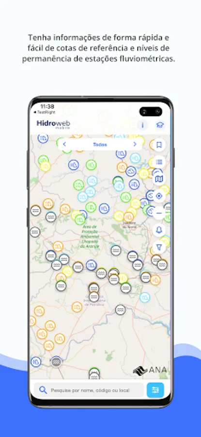 The data available through Hidroweb mobile are collected in Data Collection Platforms (PCDs), whose operation and maintenance in the field is carried out by hydrological technicians and hydrological engineers from partner entities or contracted by ANA, which is responsible for planning, standardization procedures and equipment, inspection, organization of hydrometeorological data and their publication. Currently, the Department of Water and Electric Power of São Paulo (DAEE / SP) is responsible for the operation of RHN, the Geological Survey of Brazil (CPRM), the Agricultural Research and Rural Extension Company of Santa Catarina (EPAGRI / SC) the Minas Gerais Institute for Water Management (IGAM / MG), the Instituto das Águas do Paraná (AGUASPARANÁ) and the contractors COHIDRO, CONSTRUFAM and UFC.