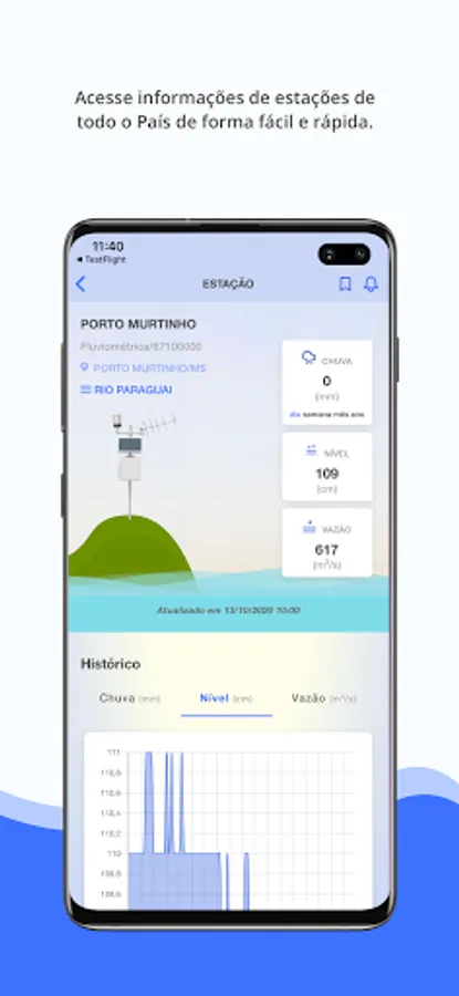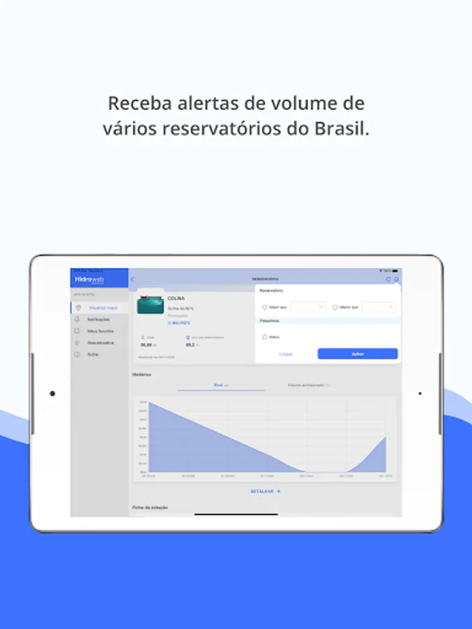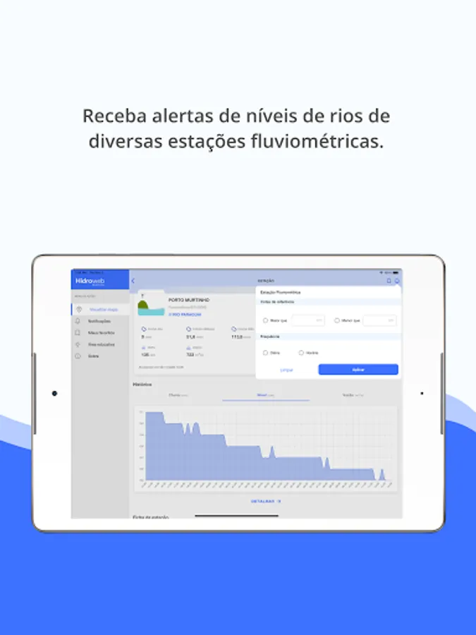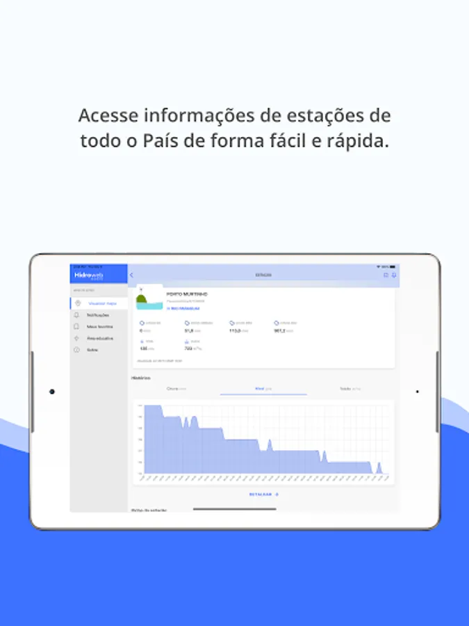 The HidroWeb mobile application is an integral tool of the National System of Information on Water Resources (SNIRH, http://www.snirh.gov.br/) and allows access, in this first version, to telemetric data collected by the National Hydrometeorological Network ( RHN), gathering data levels and flows of rivers and rains throughout the national territory. It is an important tool for society and public and private institutions, since the data collected by hydrometeorological stations are essential for the management of water resources and in various economic activities, such as power generation, irrigation, navigation and industry, besides the design, maintenance and operation of small and large hydraulic infrastructure such as dams, urban stormwater drainage and even culverts and roofs.
