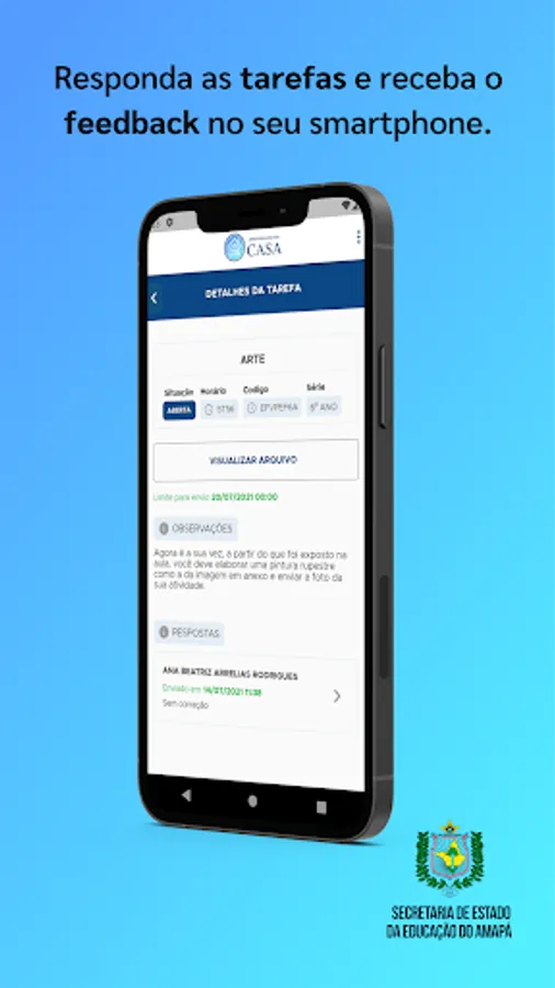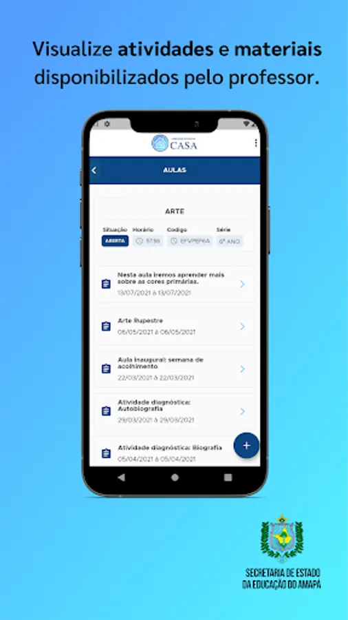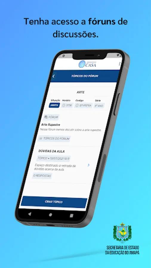 The application is intended for students from schools in the state network of Amapá, with the objective of facilitating interaction and pedagogical monitoring during the period of remote classes, especially. From the development of the application, it is expected that teachers have access to a discussion forum asynchronously, to ask questions and interact with students, in addition to allowing them to make available class material and receive feedback on student activities.