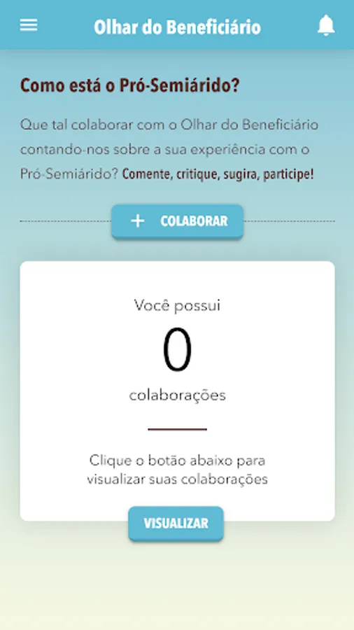 Olhares do Campo is an application whose main purpose is to manage the records of evaluations, opinions and contributions in general of the beneficiaries of the Pró-Semiárido Project.