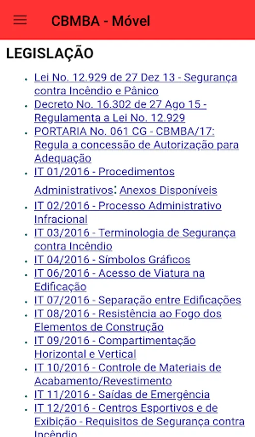 The application of the CBMBA (Fire Brigade of the Military of Bahia) has the purpose of providing the following information to the citizen:
