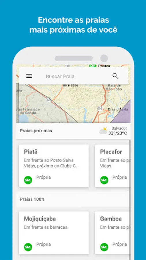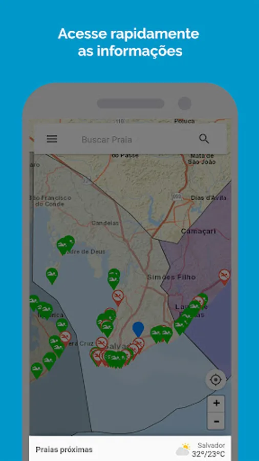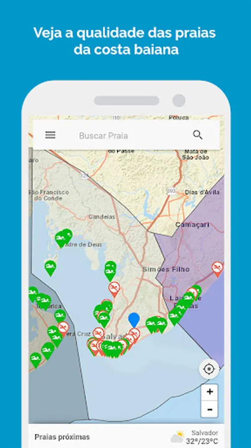 The application will give Beach available to you the quality information from the beaches in Bahia's coast that are monitored by the State Institute of the Environment and Water Resources (INEMA). Now is faster and easier to identify the best beaches for bathing.