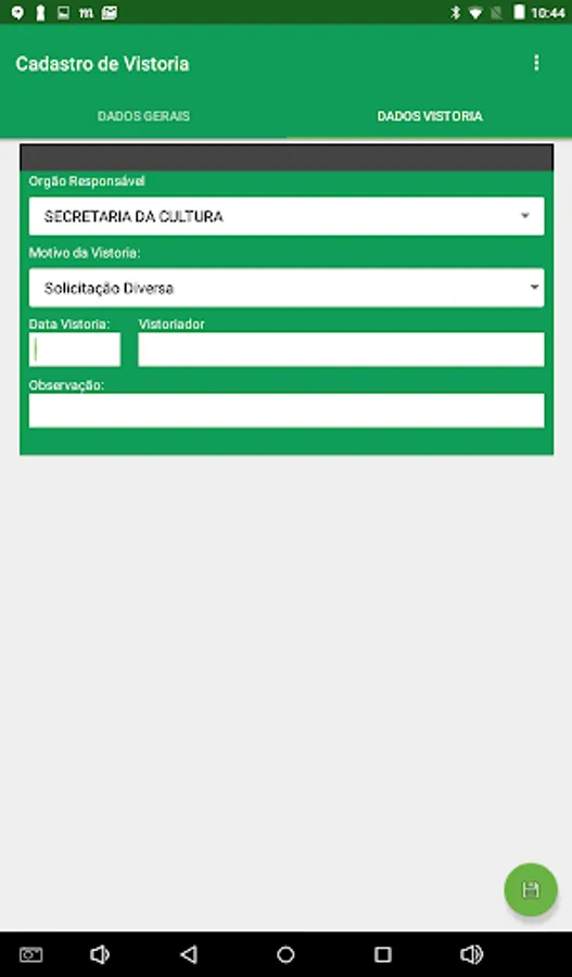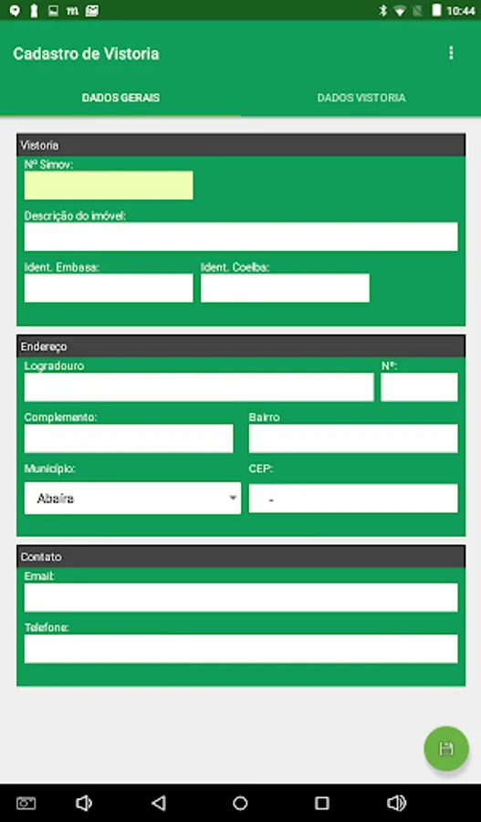 Application for creating surveys in the field, interacting with Web server SIMOV system