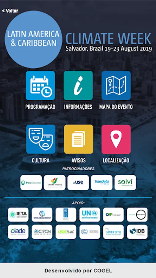 Aimed at attendees of the Latin America and Caribbean Climate Week, a UN event held in Salvador (BA) from August 19 to 23, the Climate Week app aims to provide information about the event's schedule, as well as provide cultural tips, tourist, gastronomic and mobility activities of the Bahian capital.