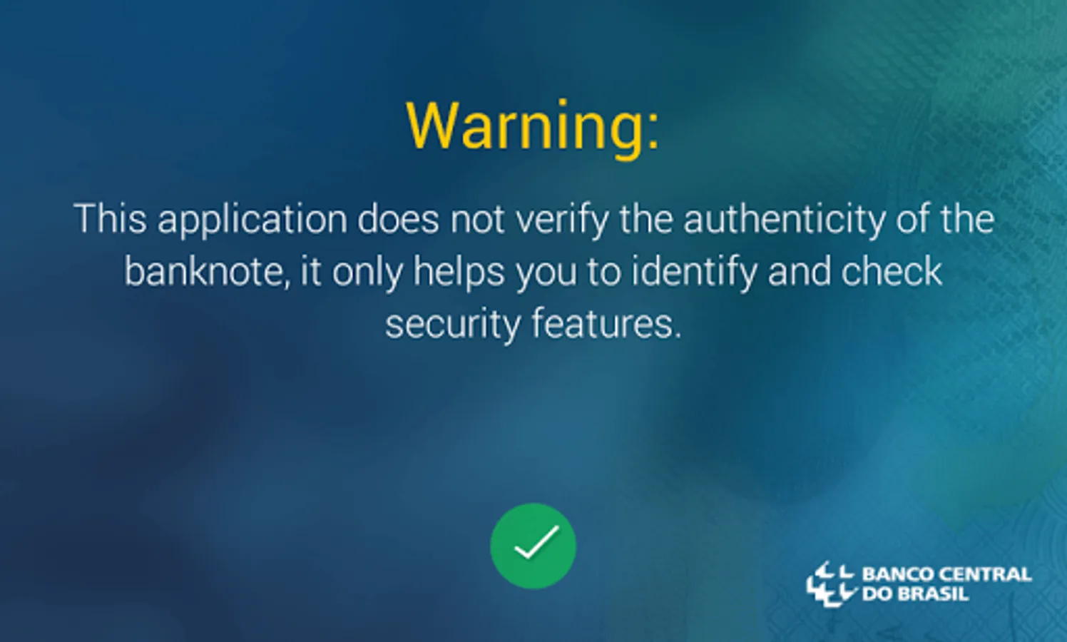 WARNING: This application does not verify the authenticity of the banknote, it only helps you to identify and check security features.