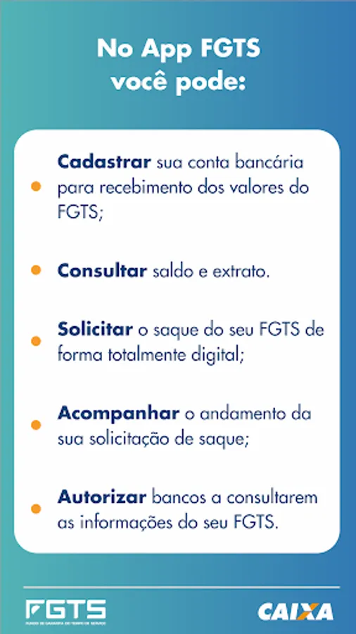 - Registration of CAIXA account or other banks, for FGTS credit in case of withdrawal;