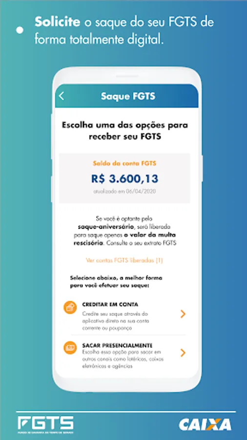 Track your FGTS in a simple way. Check the total balance of your FGTS accounts, check deposits made by your employer, print your statements and, if you prefer, you can still opt for your Cash-Birthday.