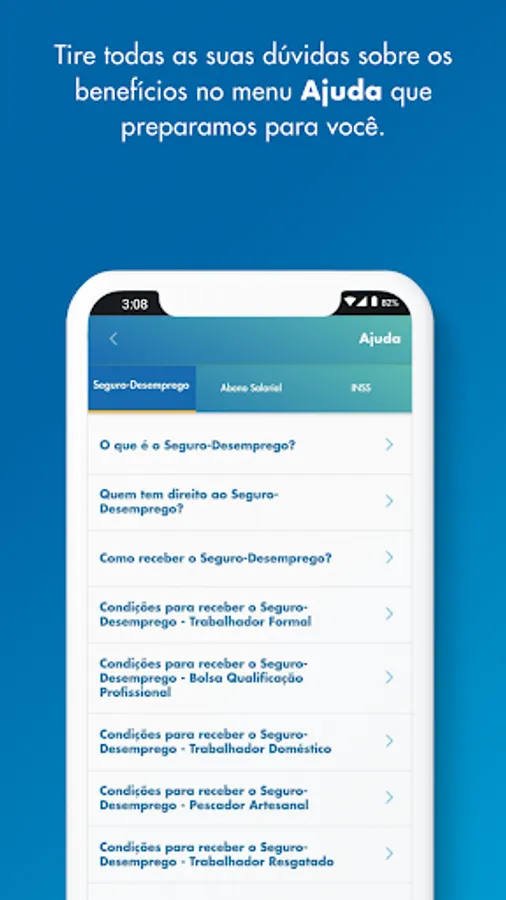 The information you need to know about Seguro-Desemprego, PIS, INSS and Abono Salarial are in this application developed especially for you by CAIXA. With just a few taps, you can view your benefits status and payment information.