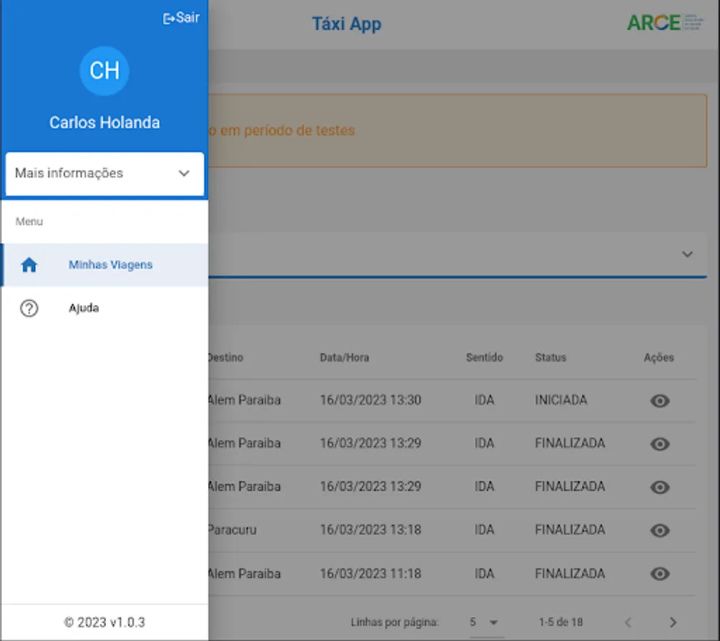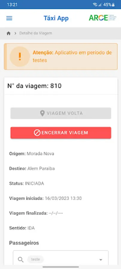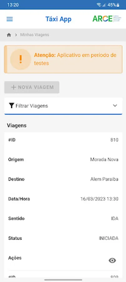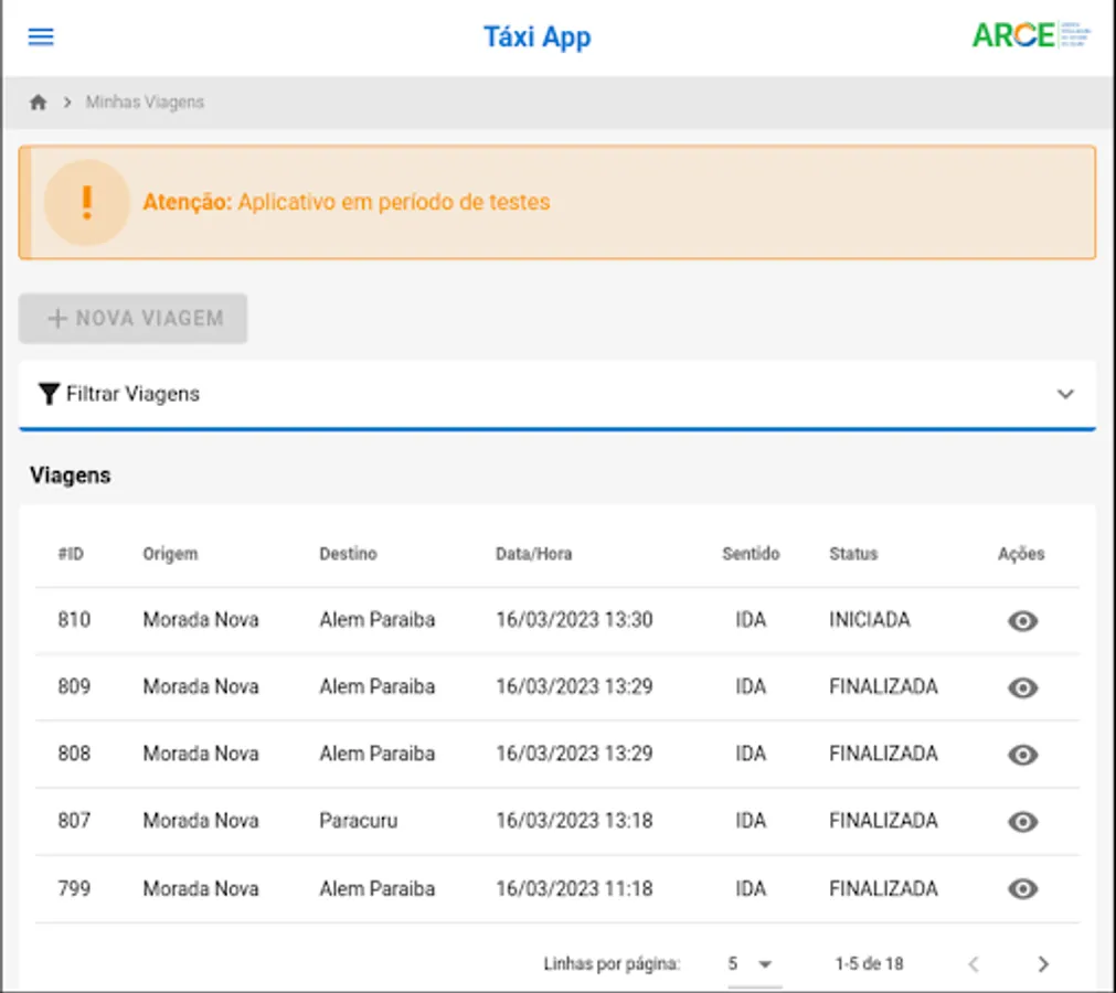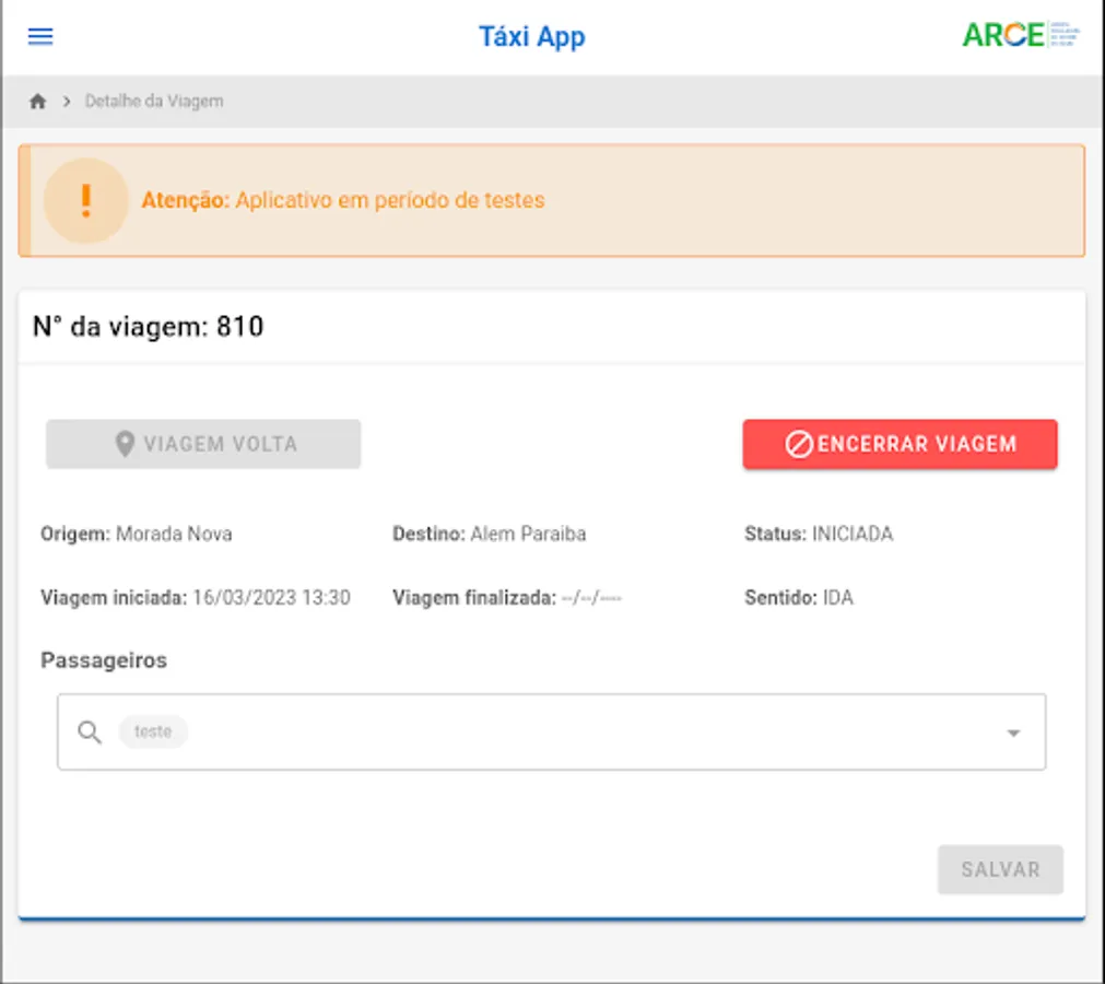 Application for recording trips of intercity taxi services in the state of Ceará, in compliance with state law No. 17.910/2022.