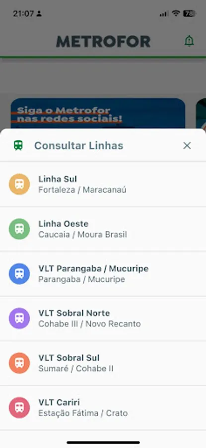 The Companhia Cearense de Transportes Metropolitanos - METROFOR, created its official application.