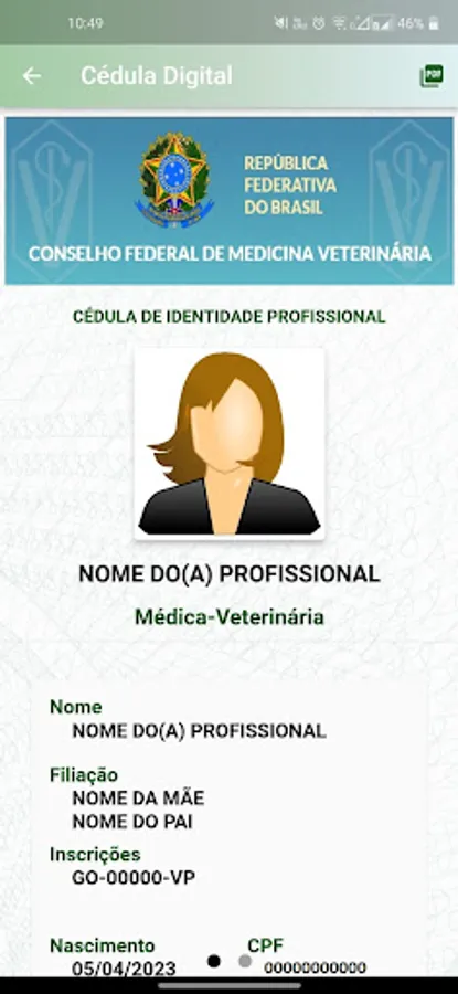 The application provides a digital version of the professional portfolio of veterinarians and zootechnicians regularly enrolled in the CFMV/CRMVs System with validity throughout the national territory.