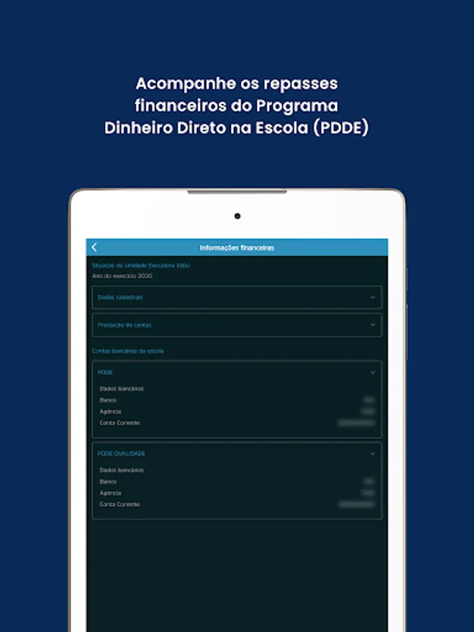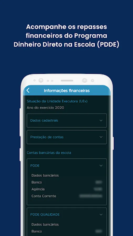 - Access the school's financial information, such as the funds received and the PDDE balance, which is a MEC Program that transfers financial resources directly to public schools;