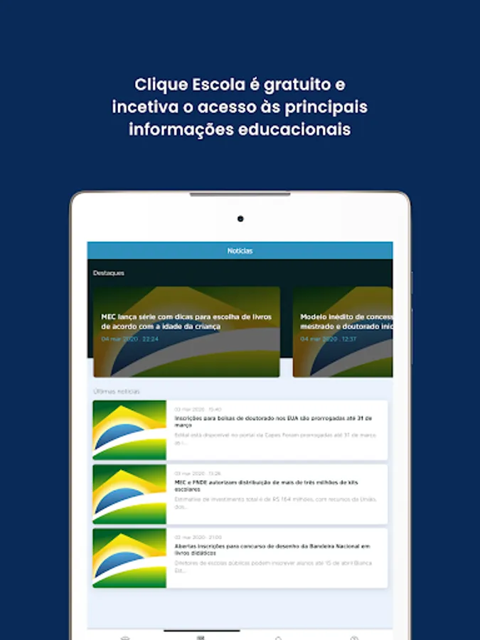 The CLIQUE ESCOLA application is free and aims to facilitate and encourage the access of the school community and society to the main educational and financial information of the school, as well as news about education, in order to facilitate the understanding and promote the transparency of the school data.