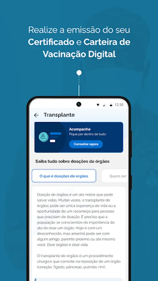 Conecta SUS Citizen is the official application of the Ministry of Health, where Brazilian citizens can view the interactions carried out at health care points and monitor their history in the Unified Health System (SUS), such as exams, vaccines, dispensing medication and location of health facilities.