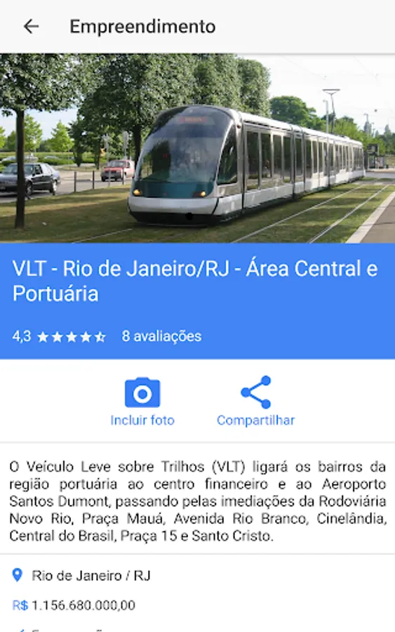 The tool increases citizen participation in governance and make government actions more transparent. With the app you can check information such as status, location and planned investments. Integrated social networks, allows you to send photos, ratings, comments and sharing pages of the enterprises.