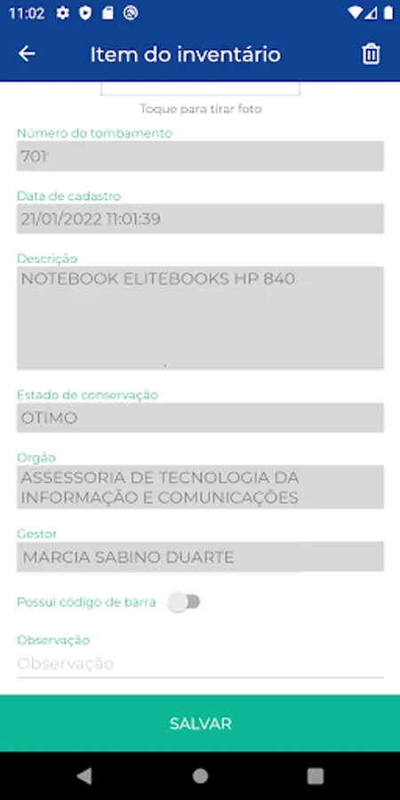 After installing the application, in just a few minutes, the manager can upload the asset data. Then, just point the camera at the bar code of the property that will be identified by the software indicating the name of the owner, the state of conservation and other data. Once identified it is possible to take a photo of the property.