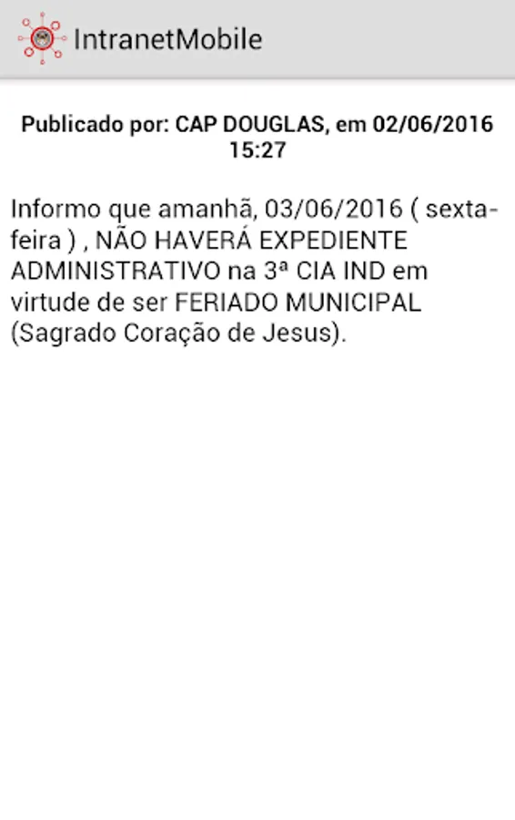 An internal application that allows military Fire of the Holy Spirit follow the news of your corporate intranet.