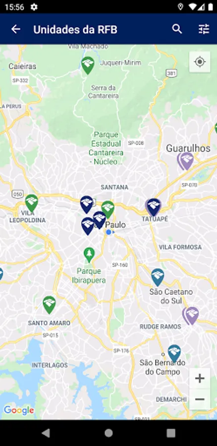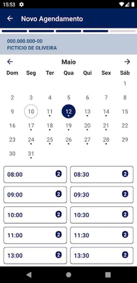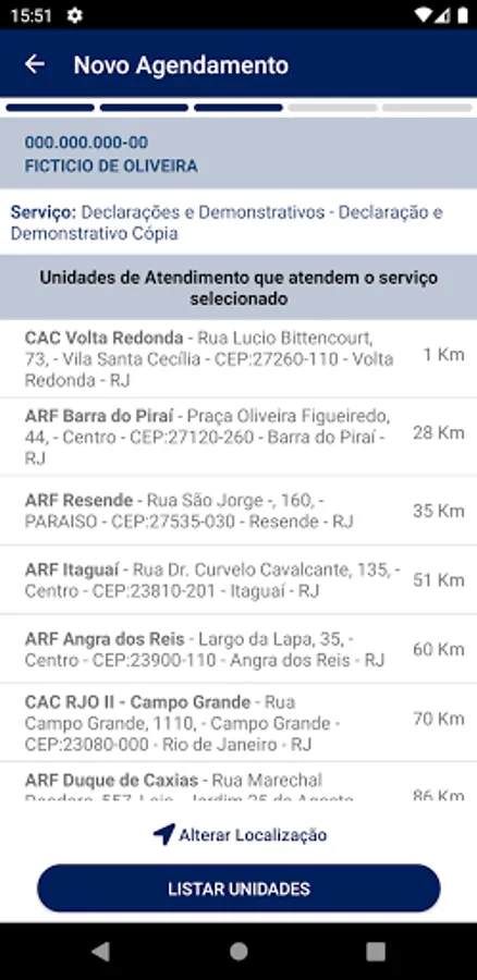 The Scheduling app displays the units (closest to the user's location) that serve the chosen service. Setting the date and time is simple and, after scheduled, it is possible to synchronize with the calendar, share with other media, view on the map and trace routes to the chosen unit.